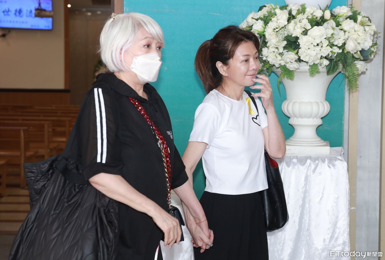 ▲金鐘製作人葉天健告別式-包翠英(左),葛蕾到場。(圖/記者周宸亘攝)