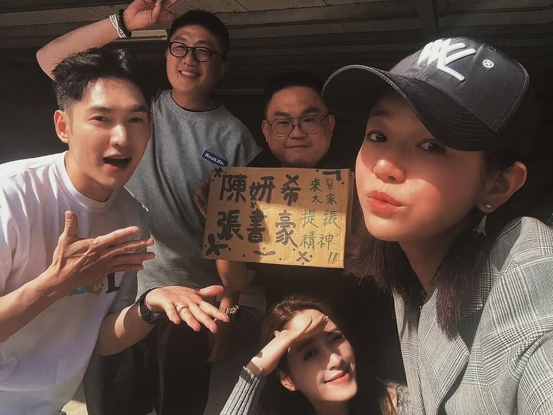 張書豪帶著老婆歐陽妮妮,加上女星陳妍希,前去探班導演林孝謙,曬照發文「缺一湊齊~大家都有了孩子,連要一起探班都好不容易~友誼長存!」他2019年與陳妍希、鳳小岳合作拍電影《跟你老婆去旅行》,還到加拿大拍外景,這次合照Hashtag當年合作的電影片名,少了鳳小岳,鳳小岳留言加上哭臉「居然沒約!」