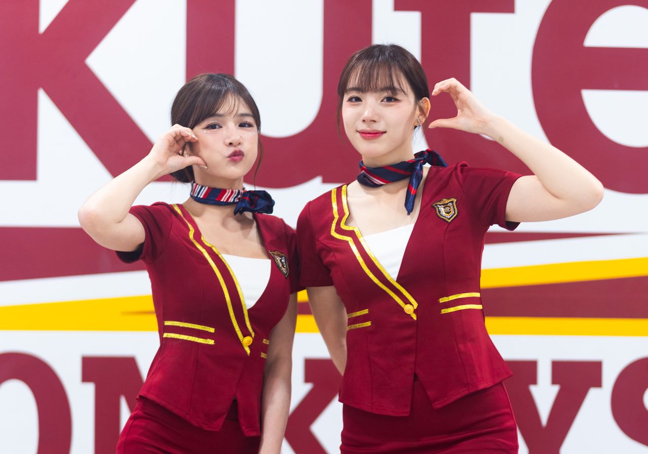 樂天桃猿「環遊世界」主題日進入第二天,20日的活動依舊熱力四射。樂天女孩們再次穿上空姐制服和窄裙,化身高顏值機組員大跳開場舞。不過中途天公不作美,大雨突襲導致比賽暫停順延,但女孩們的熱情依舊沒被澆熄。連兩天以空姐裝亮相的韓籍新成員河智媛,三天連續登板應援仍敬業十足,被問到身體狀況時笑說:「比賽的時候腳不怎麼疼,結束後總是會疼。但應援後都有休息,好多了。」