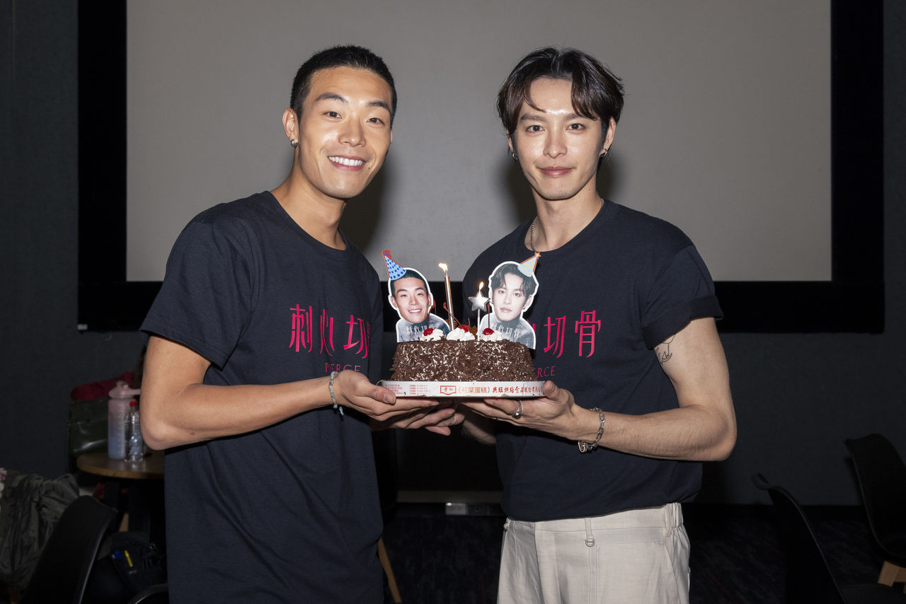 ▲《刺心切骨》團隊替曹佑寧、牧森慶生。(圖/前景娛樂、劇匯文創提供)