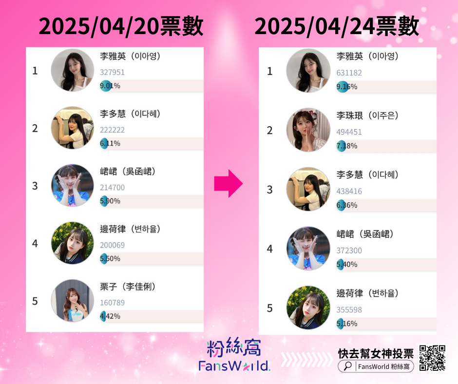 由FansWorld粉絲窩推出的「2025人氣啦啦隊女神票選」活動火熱進行中,各大女神為回應粉絲熱情,紛紛加碼送出簽名照、應援小物等獎品,目前贈品清單已高達45項,讓應援氣氛更添話題,20日至24日短短4天之間,票選榜單更出現大洗牌現象,令人眼睛為之一亮!