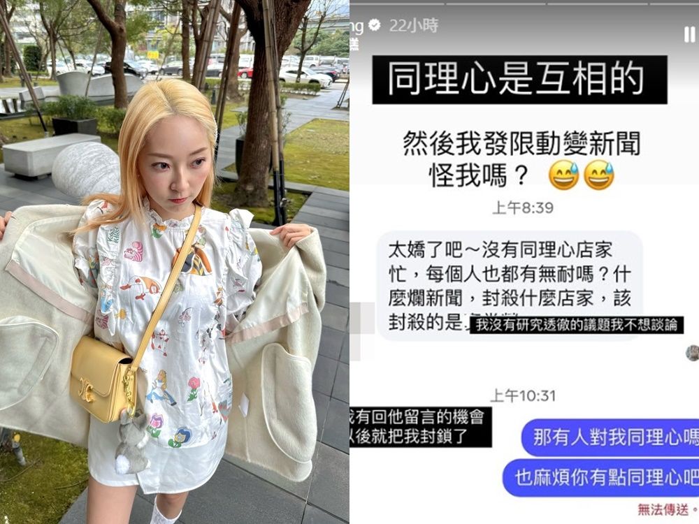 ▲翁馨儀收網友私訊,挨批沒同理心店家忙。(圖/翻攝自IG)