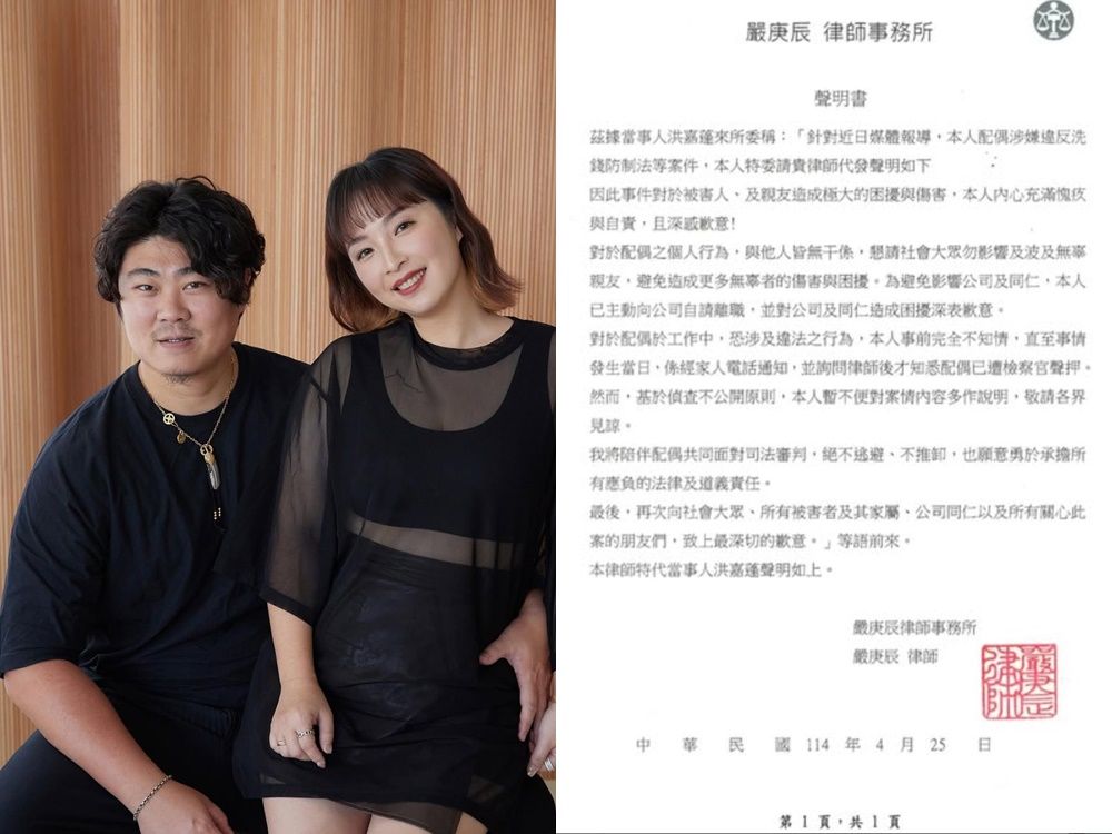 在蘇男被羈押4日後,其妻「嘉義水小姐」(本名洪嘉蓬)終於於25日透過社群平台發表公開聲明,對丈夫涉案的不法行為鄭重道歉。聲明中表達對社會大眾、合作夥伴與支持者的歉意,並強調個人並不知情丈夫涉及的非法行為,未來將全力配合司法調查,承擔應有責任。蔡阿嘎團隊則持續保持低調,尚未對事件發表正式回應。