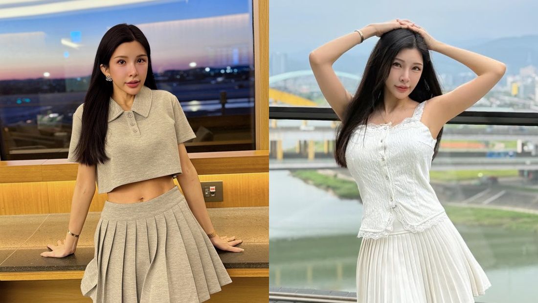 透過Lala分享的照片可見到,她身穿灰色運動風套裝入鏡,上身是短版Polo領上衣,下身搭配同色系高腰百褶迷你裙,不僅露出腹肌及纖細的腰線,更展現她的修長美腿。Lala臉上的妝容自然,搭配她招牌的黑長直髮,在不同照片中變換多種表情及動作,有時側頭微笑,有時甜笑直視鏡頭,並在文中俏皮表示:「42歲的微腹肌線條還可以吧?」