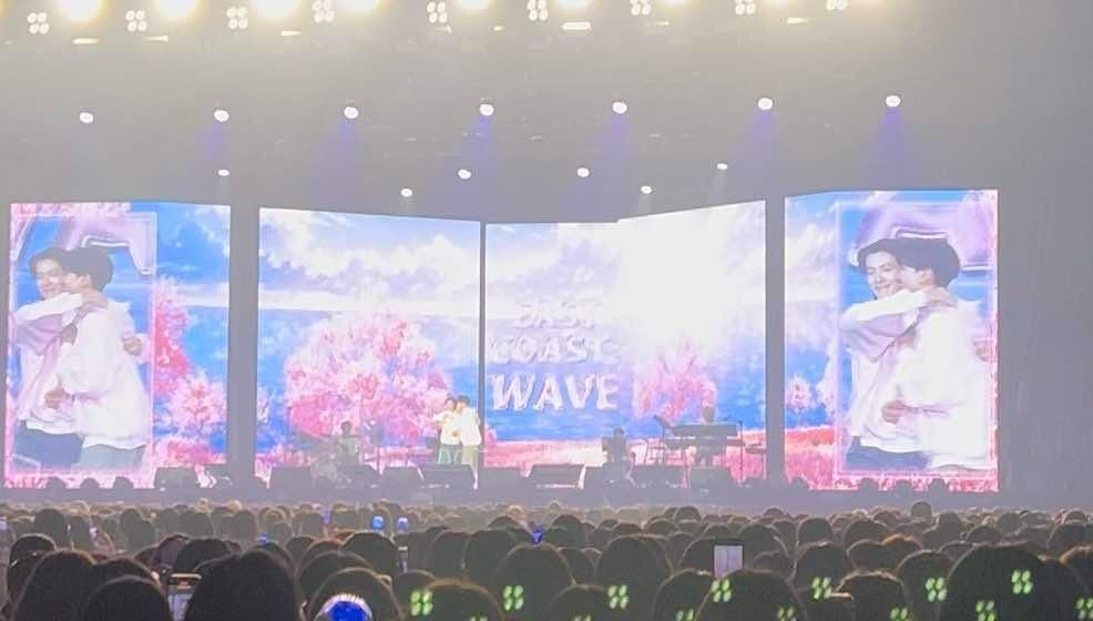 SJ D&E在台合體,東海還問銀赫「要用哪種方式打招呼」,最後兩人正式問候:「大家好,我們是D&E!」台下滿席的粉絲尖叫聲掀頂,銀赫震撼:「哇,好多人,我昨天有看到照片,但現場人數無法全拍在照片裡,這裡有7萬5千人吧,這程度要去臺北大巨蛋吧。」東海回他:「聽說我們泰妍有在那邊唱,那我們D&E要不要去一下?」銀赫接著說:「明年也是D&E的15週年,充分準備一下應該可以吧,今年又是SJ 20週年,SM自己會看著辦吧。」他們許願前進大巨蛋。