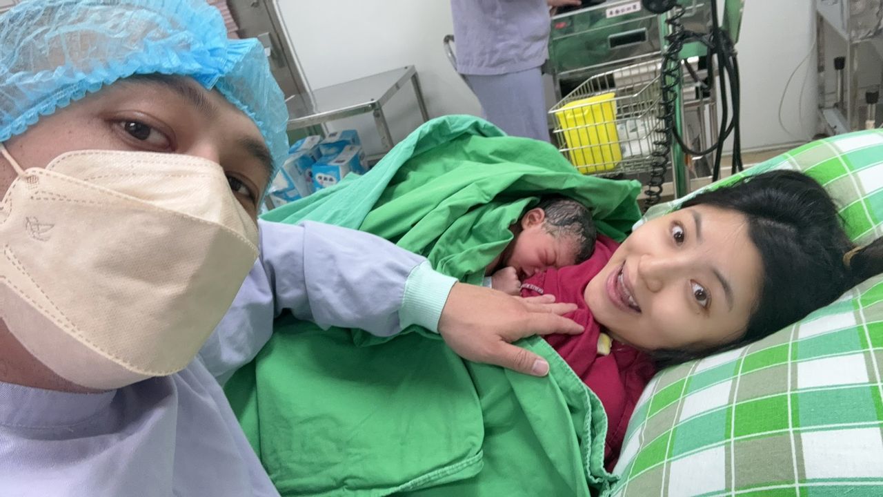 「一個小時找不到血管,狂插針快十幾次,全都失敗。我全身發紫、發抖,一下要我用力握拳、一下放鬆!我很怕打針,搞到還吐了!」林佩遙苦笑說。她甚至一度考慮直接剖腹。不過最後在醫護人員的協助下,她在昨晚11點平安生產。近24小時的生產過程中,軍人老公也全程陪伴在身邊。