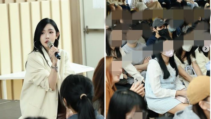 許允樂發文時不但搭配李玉璽的歌〈帶我看見〉放閃,還將男友當天悄悄坐在觀眾席的側拍照藏到第5張。只見李玉璽戴著灰色棒球帽和黑色口罩,穿著深色帽T,眼神直盯著前方的許允樂超甜蜜。