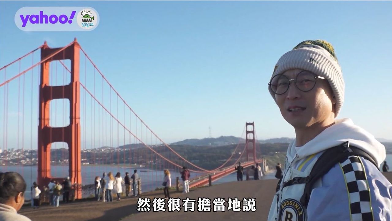 「我被它感動到了。」一行人才剛抵達金門大橋旁的拍攝點,讓浩子已忍不住感動情緒直言,「像是站在舊金山灣的兩個門神站得直挺挺,然後很有擔當地說『交給我』!」不只浩子,《鬧著玩》團隊一行人也都搶著與金門大橋合照,還帶著觀眾尋找拍攝金門大橋的秘境,現場示範起如何與金門大橋合照,並一窺橋樑鋼筋的秘密。