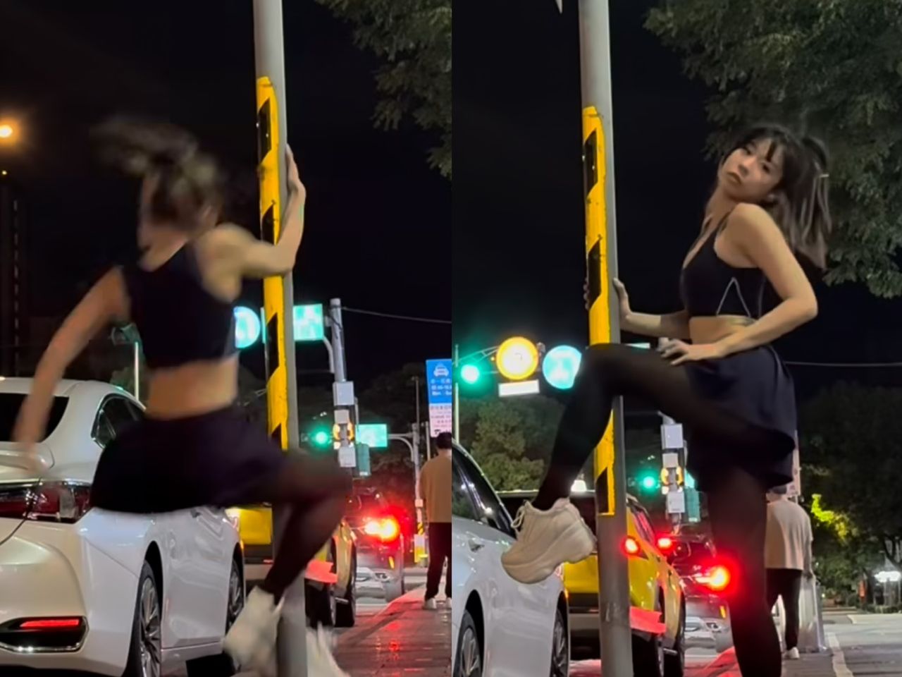 ▲香港網美Coco在台北街頭跳鋼管舞 。(圖/翻攝攝自IG/Chloe Chm)