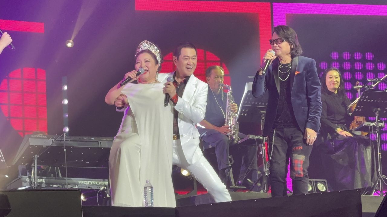 ▲白冰冰(左起)與蔡小虎合唱,沈文程與他們互動。(圖/長興影視)