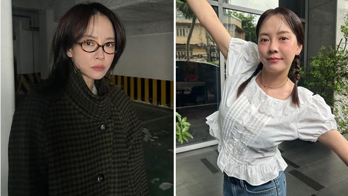 照片中,可以看到宋智孝隨興紮起頭髮,露出漂亮的鵝蛋臉,似乎還直接頂著毫無脂粉的素顏出門,膚質好到發亮。她穿著白色長袖上衣,打扮得十分休閒。