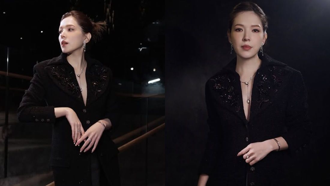 透過許瑋甯分享的照片可見到,她出席一場精品活動,身上穿著一件黑色外套,露出深V曲線,手上有不少飾品點綴,耳朵上還戴著一串垂墜耳環,整體造型相當華麗,對鏡頭擺拍的同時也不忘用手輕遮肚子。