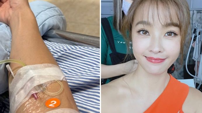 從Instagram限時動態中,可以看到小嫻的手臂插著輸液管,並貼著透明膠布固定針頭,周圍有些許藥液痕跡,背景環境是病房內的藍白條紋床單,應該是在醫院或診所接受治療。