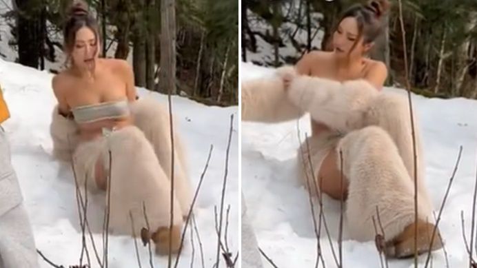 薔薔不時發出尖叫聲之餘,坐在雪地上拍照時,屁股也快被凍結,不小心跌坐時,她完全崩潰了,「我屁股現在很痛」,讓粉絲一窺她幕後敬業的一面。