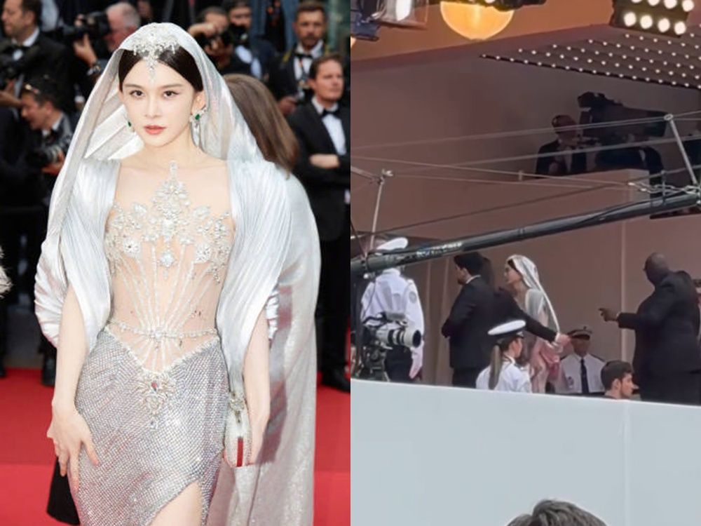 ▲趙櫻子穿透視裝走坎城紅毯,疑似被工作人員驅趕。(圖/翻攝自微博)