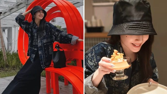 照片中,可以看到楊丞琳戴著黑色漁夫帽,沒有戴墨鏡或口罩偽裝。她穿著印有特殊圖騰的深色外套,內搭黑色長裙,雖然打扮得很低調,但非常有存在感。