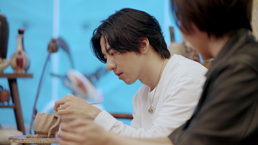 ▲傅孟柏(左)親手捏製要送給7月大女兒的未來禮物。右為主持人劉品言。(圖/鏡電視提供)