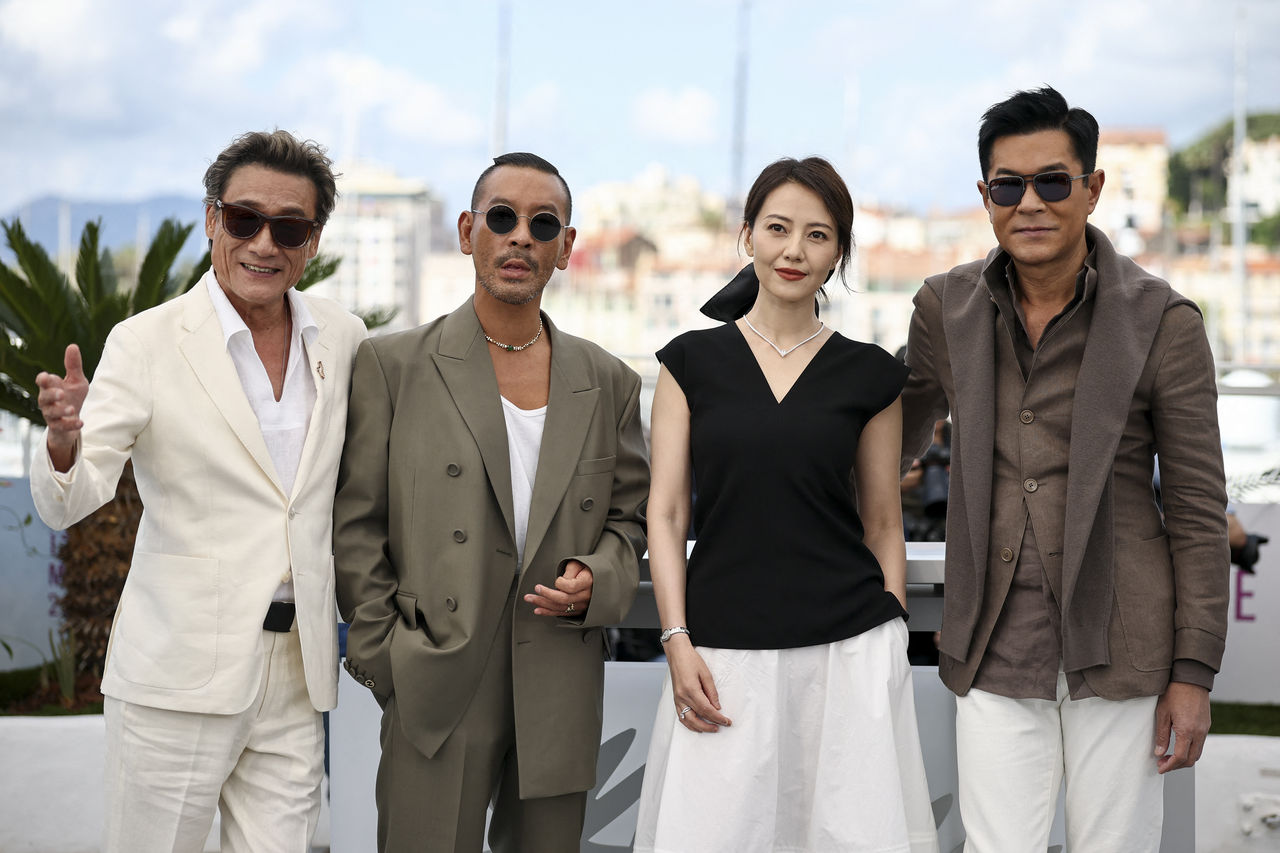 ▲《風林火山》在殺青7年終於要問世,導演麥浚龍(左二)帶著古天樂、高圓圓和梁家輝現身坎城影展紅毯。(圖/路透)