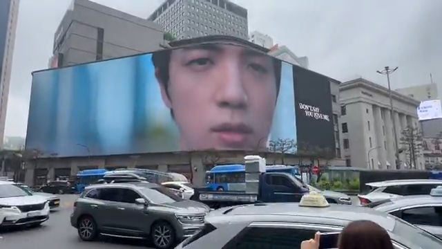 韓國超人氣天團BTS(防彈少年團)成員Jin(金碩珍)近日推出新歌,不僅在YouTube上迅速累積點閱率,還登上了百貨公司外牆的巨型LED螢幕,吸引粉絲駐足拍攝,然而他的帥臉意外卡在螢幕轉角處,讓現場粉絲陷入一陣沉默驚慌,意外成為熱議焦點之一。