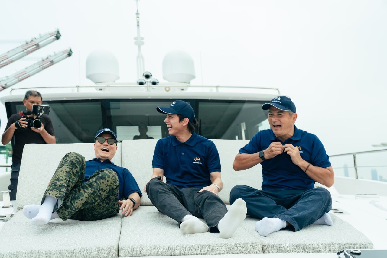 ▲李銘忠(左起)、范少勳、李銘順體驗遊艇豪華內裝。(圖/公視提供)