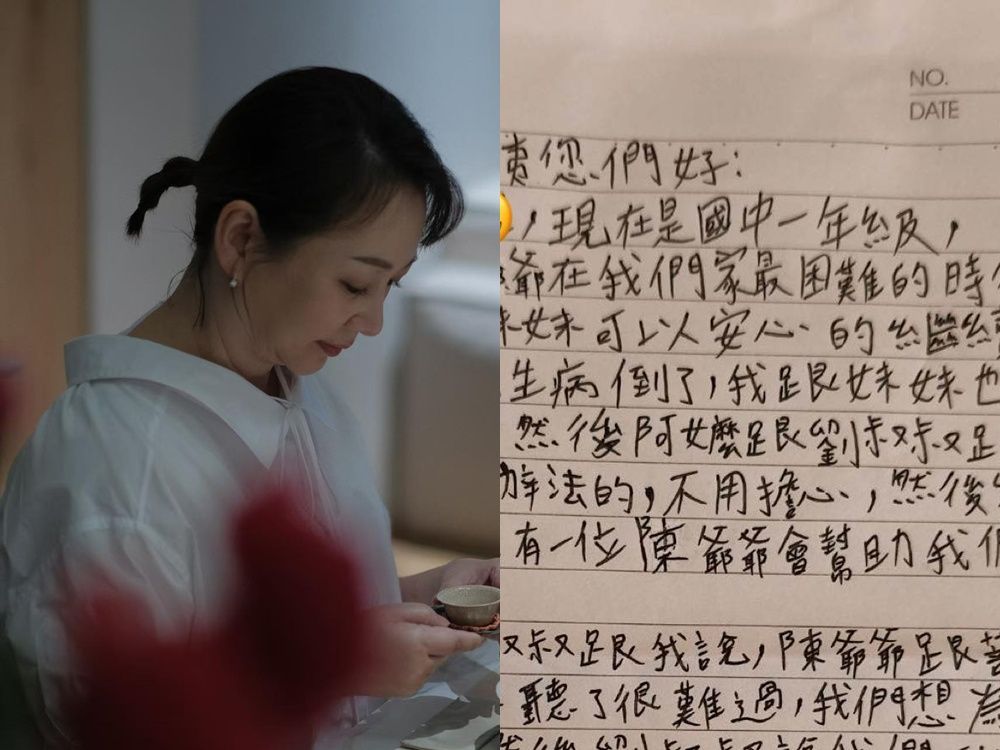 ▲郁方收到感謝信,才得知公公生前默默幫助陷入困境的小姊妹。(圖/翻攝自臉書)