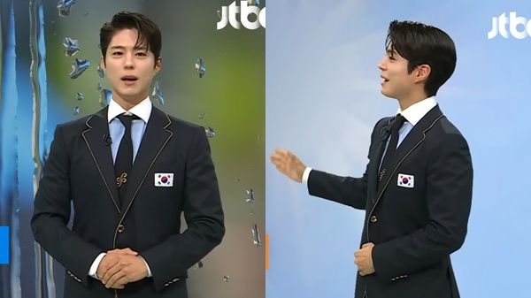 朴寶劍於26日播出的JTBC《新聞室》中驚喜亮相,擔任氣象主播,穿著胸前繡有太極旗的國家代表團服登場,親切地問候道:「初夏,一個讓人聯想到新開始的季節。」