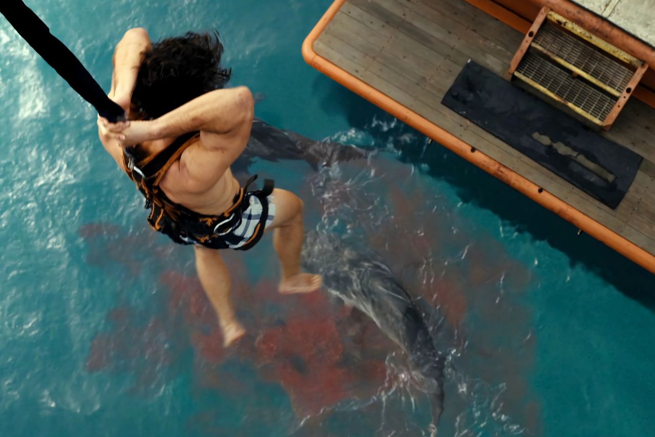 ▲《鯊人魔》上演駭人「人肉餵鯊秀」。(圖/CATCHPLAY提供)