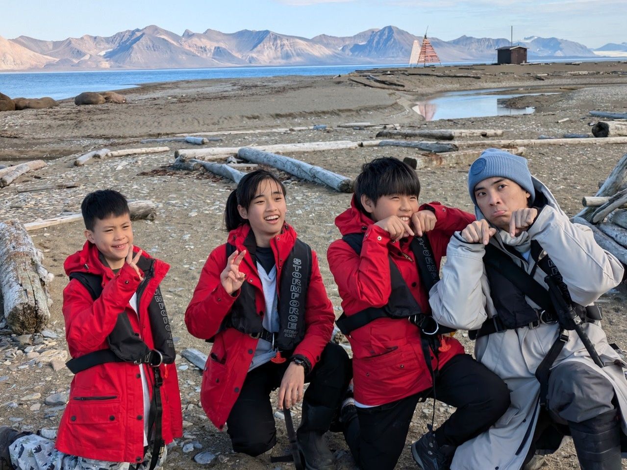 這趟旅程從挪威首都奧斯陸一路飛往北極圈內的朗伊爾城,林哲熹和孩子們第一眼就愣住了「怎麼完全沒有雪?」北極正值永晝,氣候異常溫暖,這個原本應該是冰雪世界的科學重鎮,如今氣候變遷跡象明顯,讓首次踏上北極的探索團一行人都深感震撼。