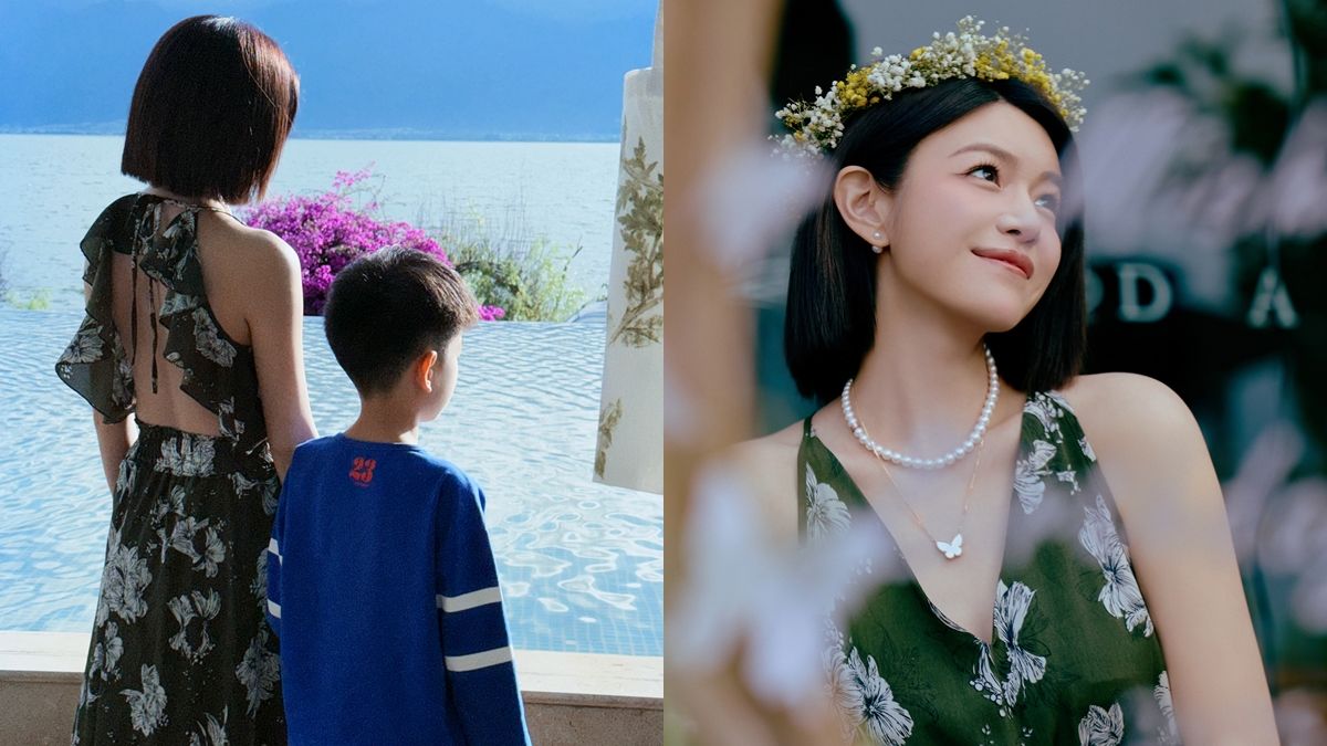 其中一張背影照更顯示這件洋裝為露背設計,增添幾分性感與柔美交織的氣質。陳妍希整體狀態極佳,氣色紅潤,她也在自己的微博放出和兒子合照的背影說:「願我們都能做更好的自己,祝我生日快樂。」