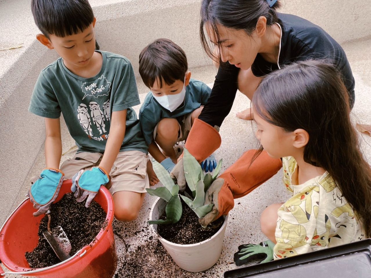 ▲隋棠和孩子們一起拯救植物。(圖/翻攝自Facebook/隋棠)