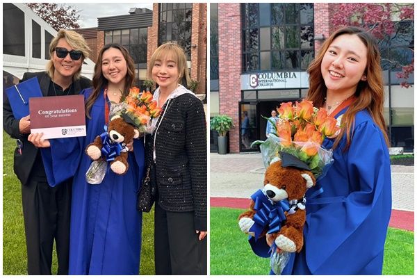 而樂樂也在社群平台分享了一組畢業典禮的照片,她身穿藍色畢業袍,手捧橘紅色花束與小熊玩偶,氣質出眾的模樣引來網友熱烈討論。許多人紛紛留言讚美「笑容好像媽媽」、「看著她一路長大的人報到~恭喜樂樂」、「越長大越漂亮」。此外,網友也送上祝福,期待她未來在學業上持續展現卓越表現。