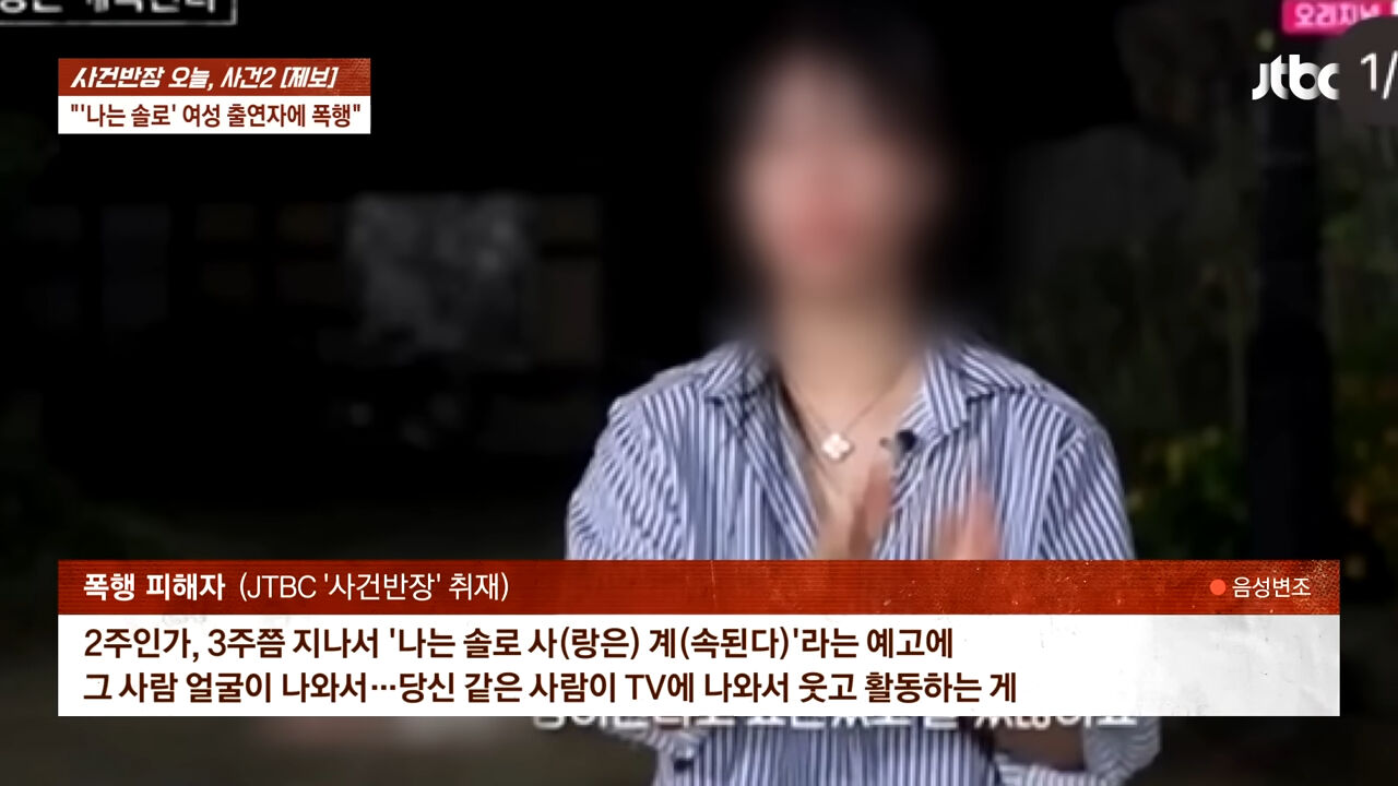 女嘉賓貞淑(정숙)曾在2022年出演《我是solo》第10季,近日卻爆出她對路人動手的刑事案件,一名男子10月3日在大邱準備搭計程車時,後方一對喝醉的男女插隊打算上車,男子表示「是我先攔到的,請你們搭後面的車」,沒想到,貞淑還沒開口、一巴掌就先打下去,接著又是一陣狂打,共賞了男子6巴掌。