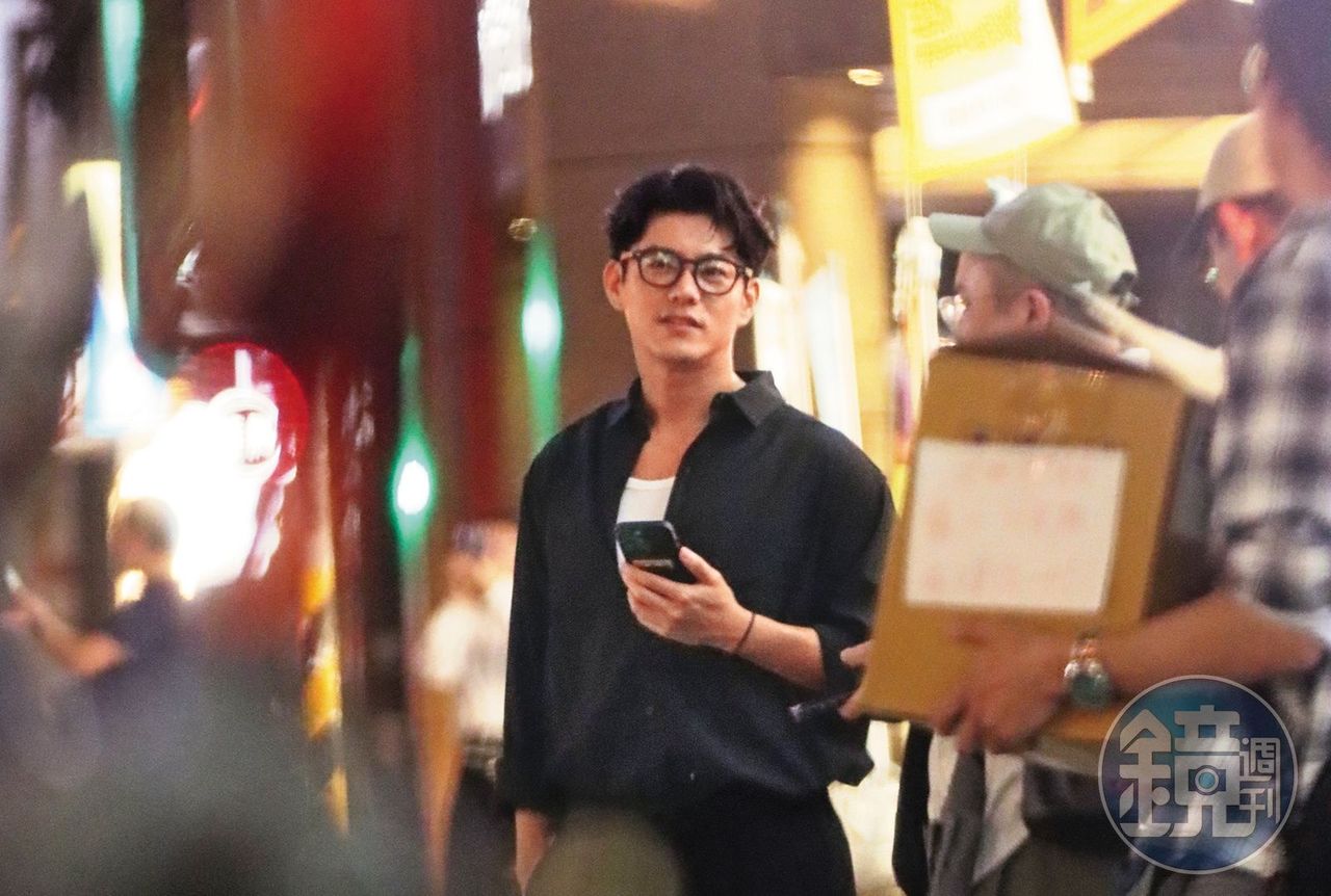 ▲6/5 22:01,李程彬走出《有愛我們床上談》殺青酒宴餐廳等車。(圖/鏡週刊)