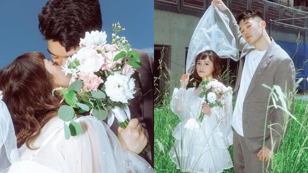 透過王齊麟分享的合照可見到,他身穿一件淺色西裝,內搭白色上衣,用手輕輕撩起陳詩媛的頭紗,同時不忘對鏡頭露出笑容。一旁陳詩媛則穿著一件白色薄紗蓬蓬裙,頭上搭配頭紗,手上拿著一束白花,整體造型相當浪漫夢幻,充滿少女感。小倆口站在草叢擺拍,緊靠在一起親嘴,展現升格成為夫妻的幸福感。