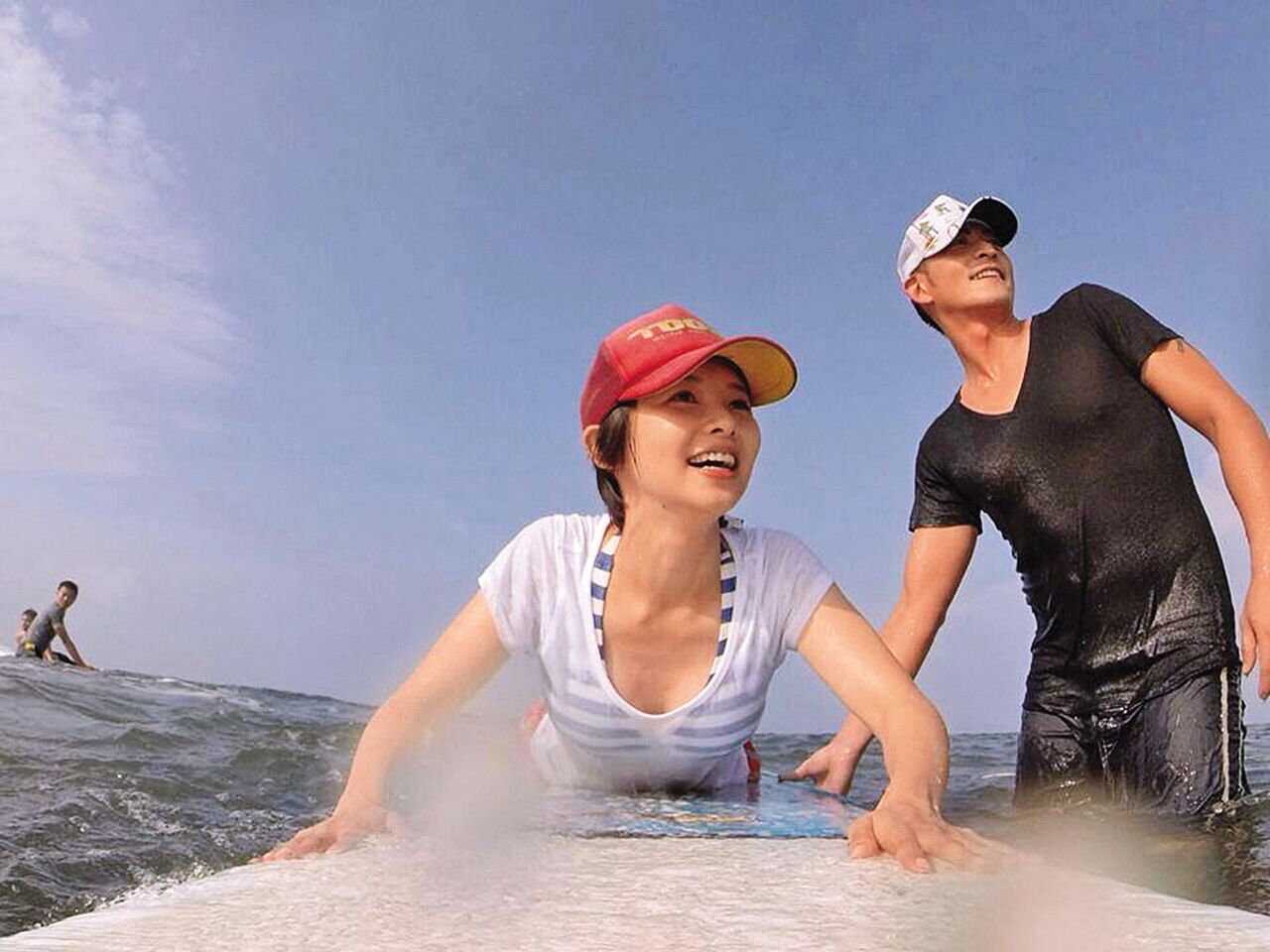 ▲早年趙駿亞(右)教吳婉君(左)衝浪的畫面有留存下來,相識甚早的他們,承認「正式」交往是從去年8月。(翻攝自吳婉君臉書)