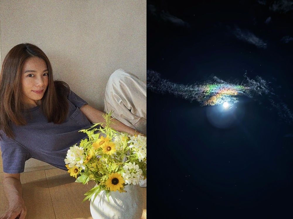 田馥甄發文「今晚月色真美」,接著曬出一連串夜景照,其中一張月亮散發著強烈的光芒,周圍的雲層呈現出彩虹般的色彩,形成一種迷人的光暈效應,且雲層因光線反射,彷彿現出一條巨龍在夜空中,增添了神秘的氛圍。整張照片充滿了詩意和超現實的美感,網友紛紛形容「龍戲珠,龍象徵雨雲,珠代表月亮」、「好像飛龍在天」、「好美的彩暈」、「也拍的太漂亮了吧」。