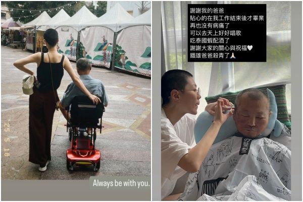 曹雅雯今天發文表示:「謝謝我的爸爸,貼心的在我工作結束後才畢業,再也沒有病痛了,可以去天上好好唱歌,吃泰國蝦配酒了,謝謝大家的關心與祝福,鐵雄爸爸殺青了。」相當堅強。