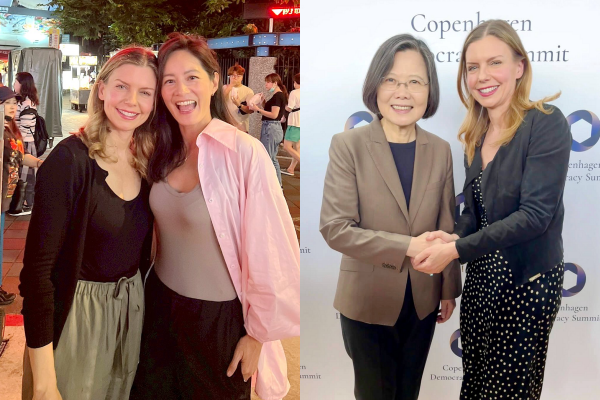 《看不見的國家》台灣首映會上有Netflix夯劇《人選之人–造浪者》飾演女總統的呂雪鳳加持,其實另一位在未演先轟動的台劇《零日攻擊》中同樣扮演女總統的謝怡芬(Janet)與葛靜文也有交集。上月在丹麥舉行的「2025哥本哈根民主高峰會」上,就上演著葛靜文與Janet、蔡英文三人同時出席並在異地相會的「魔幻時刻」。