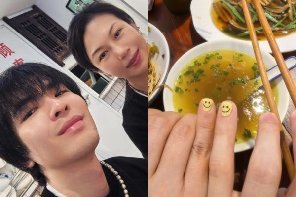 蕭敬騰睽違一個月,15日在Instagram更新和老婆的甜蜜系列合照,照片中可以看到,夫妻倆打扮休閒,現身在一家小吃店開心用餐,眼前擺滿熱湯、麵食和小菜。不過最引人注目的,是照片中小倆口將各自左右手的小指頭碰在一起,仔細一看,指甲上竟然還畫著一樣的黃色笑臉美甲,童趣十足,甜度爆表。