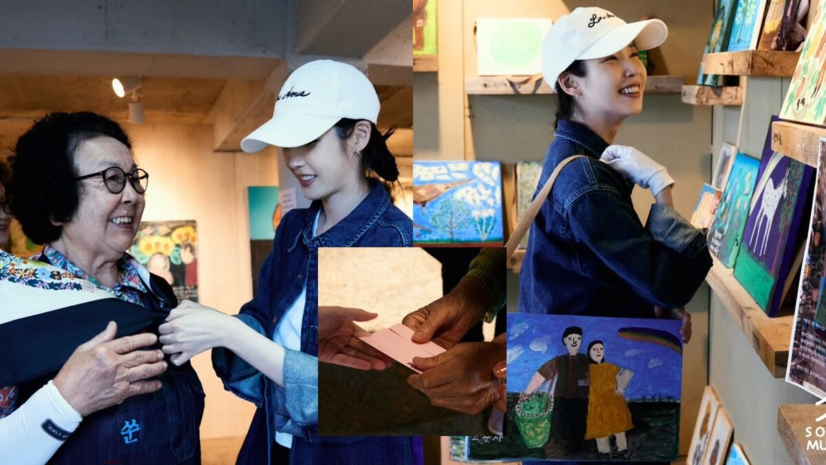 當天IU一現身即如聖誕老人般,背著大包禮物進場,立刻被96歲的「加油奶奶」趙秀容阿嬤熱情迎接:「愛純來啦!」IU也配合畫室規則,戴上白手套慢慢挑選畫作,並將自己精心準備的信件一一遞交給奶奶們,她對畫作細心觀賞,在《寬植和望沙里》、《向日葵盛放》等代表作前駐足,展現對藝術的尊重與欣賞。