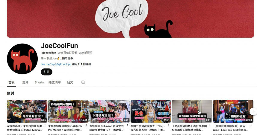 ▲Joe在YT上主要介紹泰國人文風情,更有不少老司機行程特輯,訂閱數約2萬餘人,但其最高觀看次數曾多達30萬點閱。(圖/翻攝自JoeCoolFun YT)