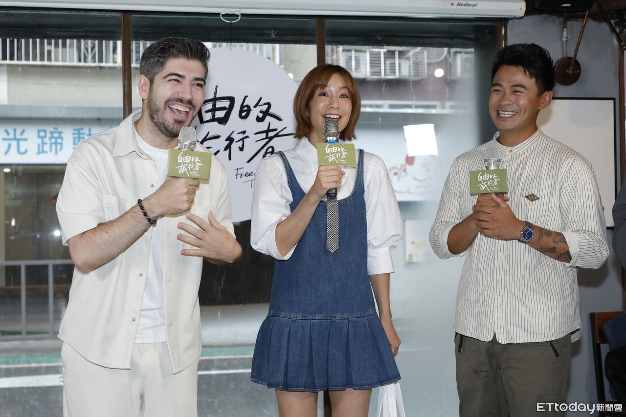 ▲《自由的旅行者》,主持人為網友票選年度最愛的旅遊YouTuber之一的融融(右)及土耳其友人圖佳(左),八大綜合台一姐莎莎,身為外景節目的前輩也驚喜現身祝福。(圖/記者湯興漢攝)