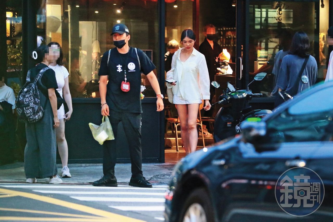 ▲6/25 18:42 服役期間日子過得挺舒服,王大陸看似胖了一圈,離開聚餐店家時,他終於把口罩卸一半露出眼、鼻,女友則緊跟在後。(圖/鏡週刊提供)