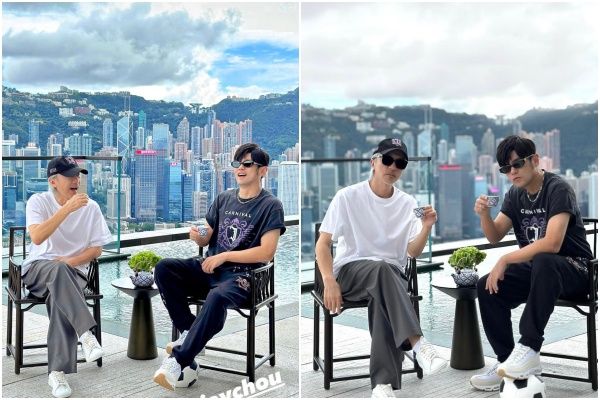 今周星馳曬出與周杰倫的合照,並用粵語寫:「聽說,一個人如果沒有夢想,就和鹹魚沒什麼兩樣。所以我頭戴周董的經典帽、戴上他的酷炫墨鏡,擋住俗世的風沙!」照片中周董還腳踩一顆足球,格外引人注目,周星馳寫:「雙腳踩著少林足球的節奏,手裡捧著一壺夢想,我和周董一起沖淡現實的苦澀,泡出人生的香甜滋味!」發文1小時就吸引超過8.3萬人按讚。