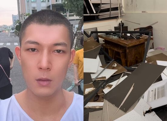 鳳梨颱風夜7日凌晨突然發文,寫道:「我要趕夜車回去了,家全破了。」隨後PO出嘉義家中被颱風破壞的慘照,只見整面窗戶破裂,窗框直接砸進家中,天花板、牆壁、門板破裂散落在地,桌椅也被吹倒,地上還淹水,現場滿目瘡痍。