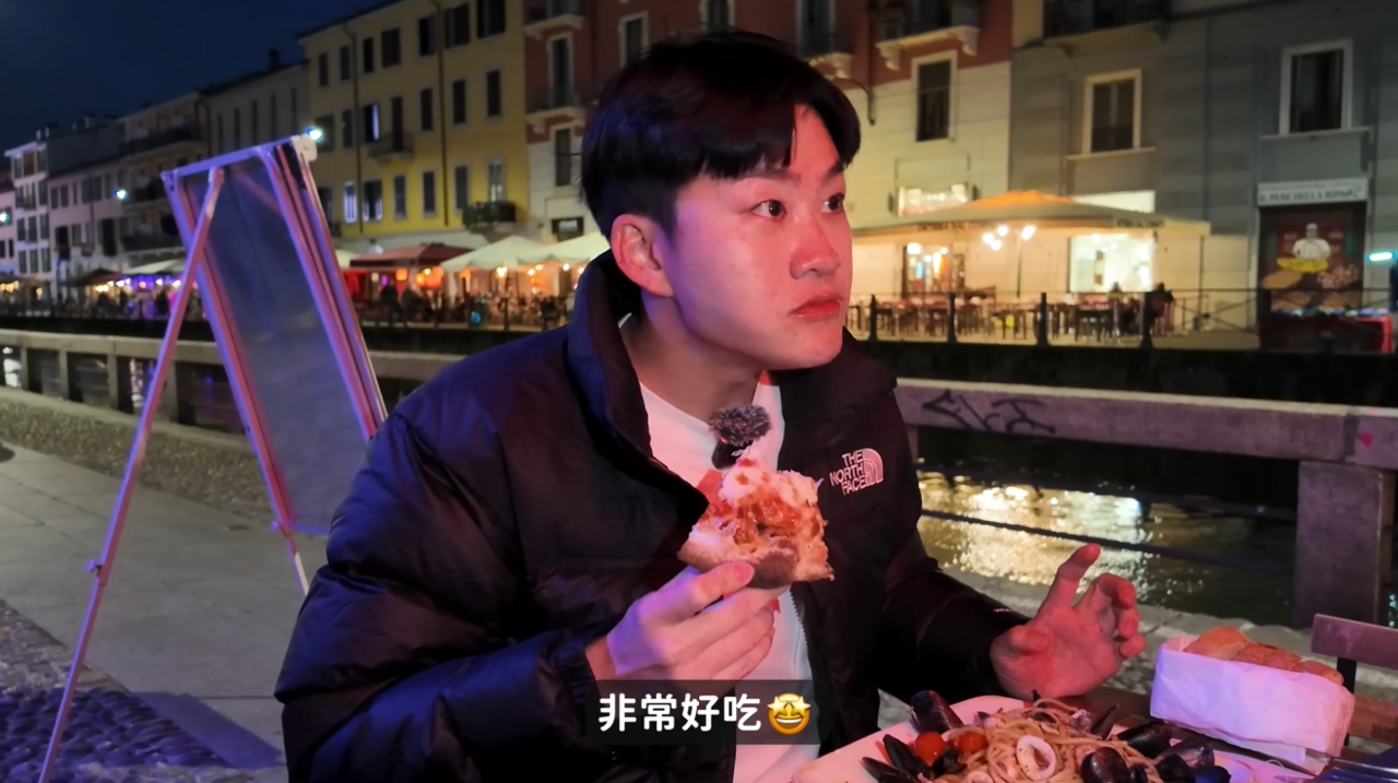 有趣的是,影片中Joeman在米蘭運河旁邊的餐廳用餐時,吃了一口瑪格麗特披薩,下意識看向鏡頭之外的方向說「非常好吃」,接著轉頭面向鏡頭繼續介紹。這一幕引發網友們猜測,Joeman是不是帶「女友」一起遊歐洲,大家紛紛留言開玩笑,「義大利這麼浪漫一定是跟心愛的人來啊」、「這小子不是一個人遊歐洲」、「兩份餐具,不是獨旅嗎」、「主餐都兩份,有在飲控才不會這樣點」。