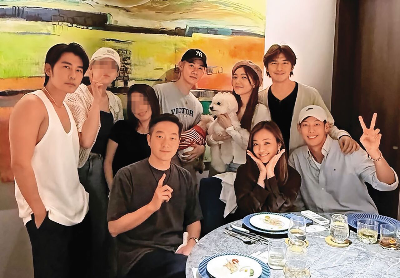 ▲陳柏霖(後排右一)與庭瑄(後排右二)參加友人的聚會,同框非常公開且大方;本刊除了入手此張近來的獨家照片,也獲悉兩人將在年內結婚。後排左一為森田、後排右三為夏和熙。(翻攝自顧奇明IG)