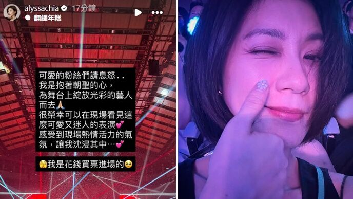 ▲▼賈靜雯被罵爆後澄清是自行花錢買票進場的。(圖/翻攝自Instagram/alyssachia)