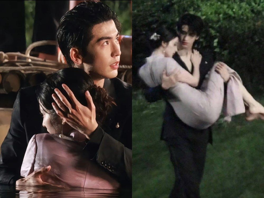 《這一秒過火》屬於民國劇題材,張凌赫有軍閥造型,王楚然則是旗袍扮相,近日拍攝一場落水戲,王楚然身穿粉色旗袍,不同於厚重古裝穿搭,這次的旗袍裝扮讓前凸後翹的身材盡現。兩人因劇情拍落水戲,張凌赫除了把王楚然抱出水,回到陸地上仍持續以公主抱的姿態抱著女方。