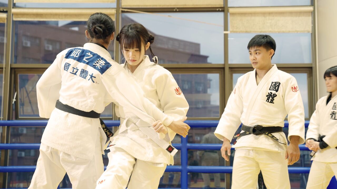 ▲吳心緹在柔道國手教練蔡明諺的指導下,「大外割」小老師。(圖/公視提供)